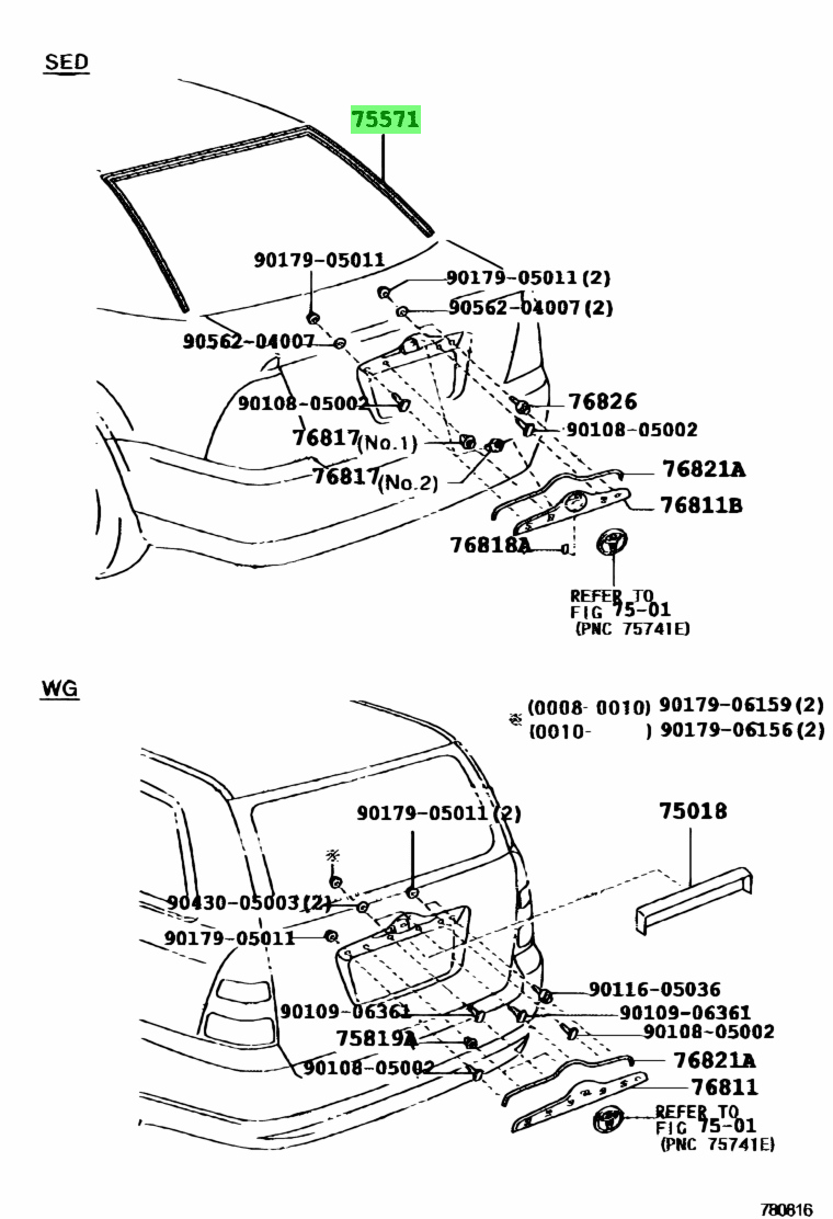 إطار النافذة الخلفية الخارجي العلوي لسيارة كورولا – 2007