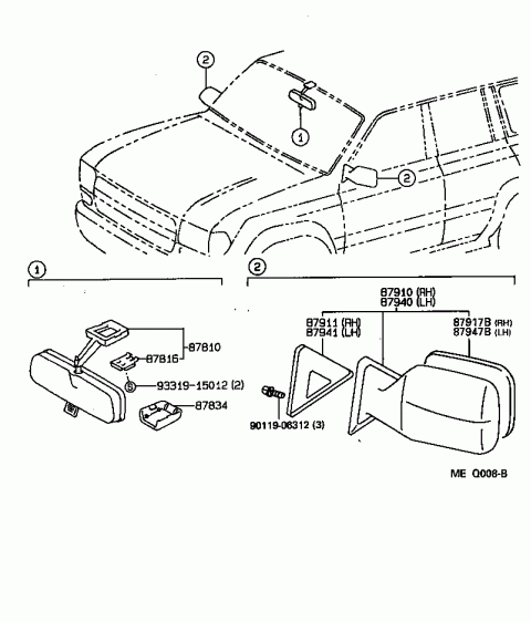 مرآة داخلية لسيارة لاند كروزر على السقف – 1998-2002